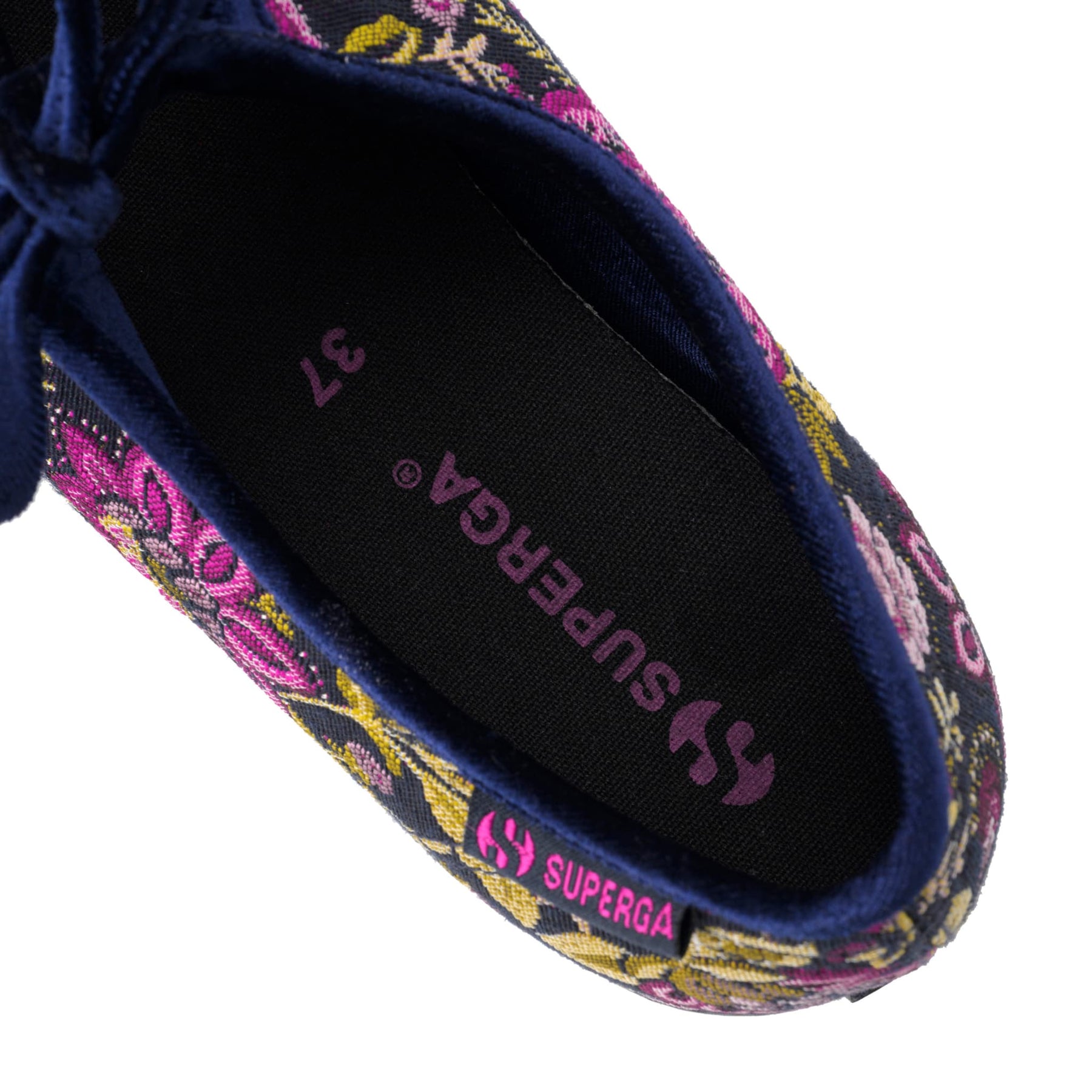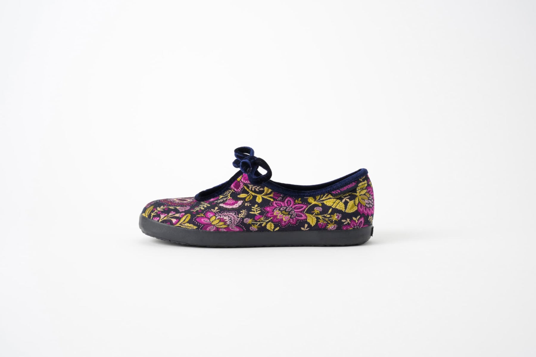 華やかなジャカード生地のアッパーにベルベットの縁取りを施し、ロマンティックな表情を添えました。