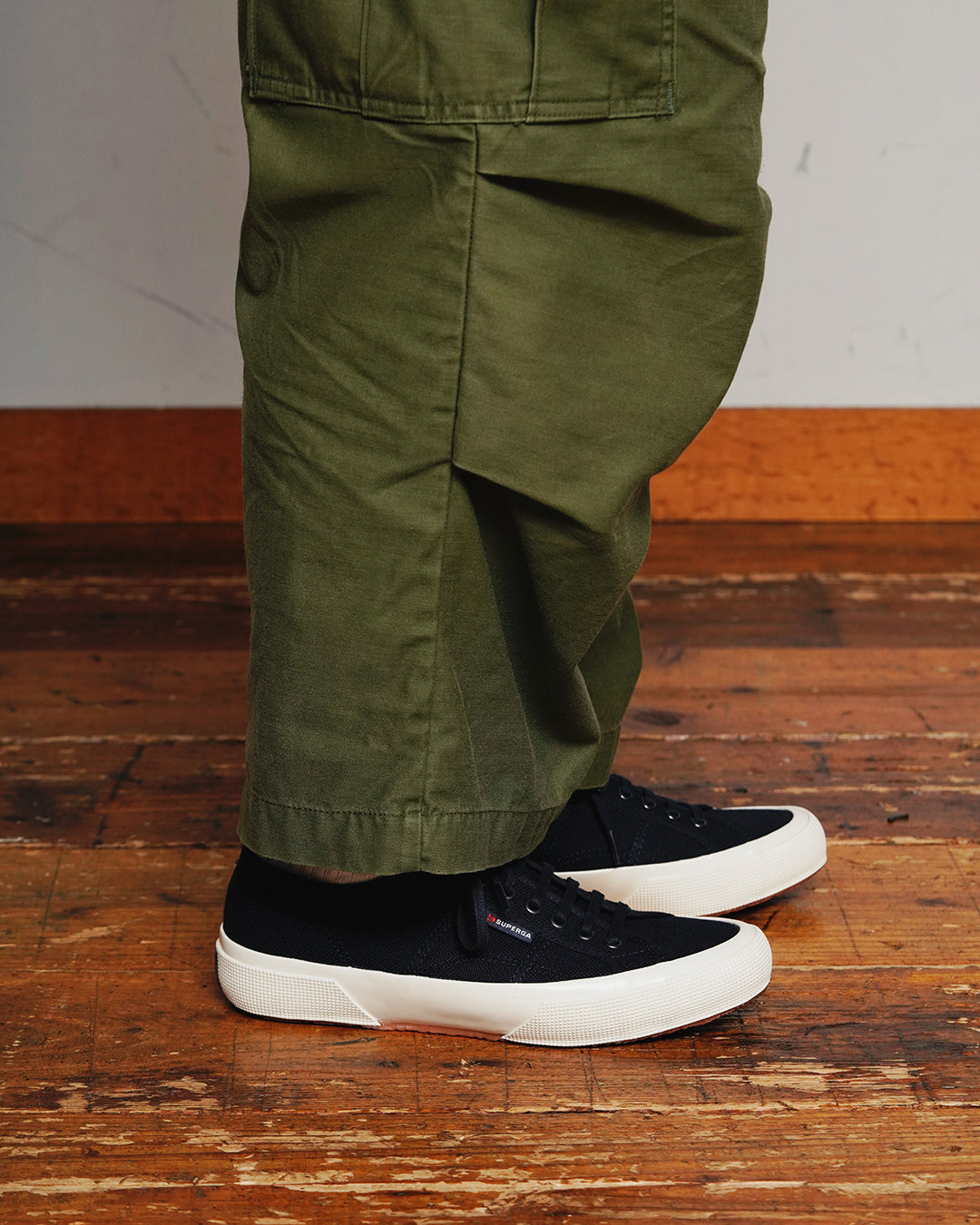 「2750 オージー」は、1940年代のアーカイブからインスパイアされたテニスシューズのリプロダクションモデルです。ヒールパッチには当時のロゴを採用し、SUPERGAの歴史と伝統を感じさせます。タイムレスなデザインでありながら、現代のテクノロジーでアップグレードされています。