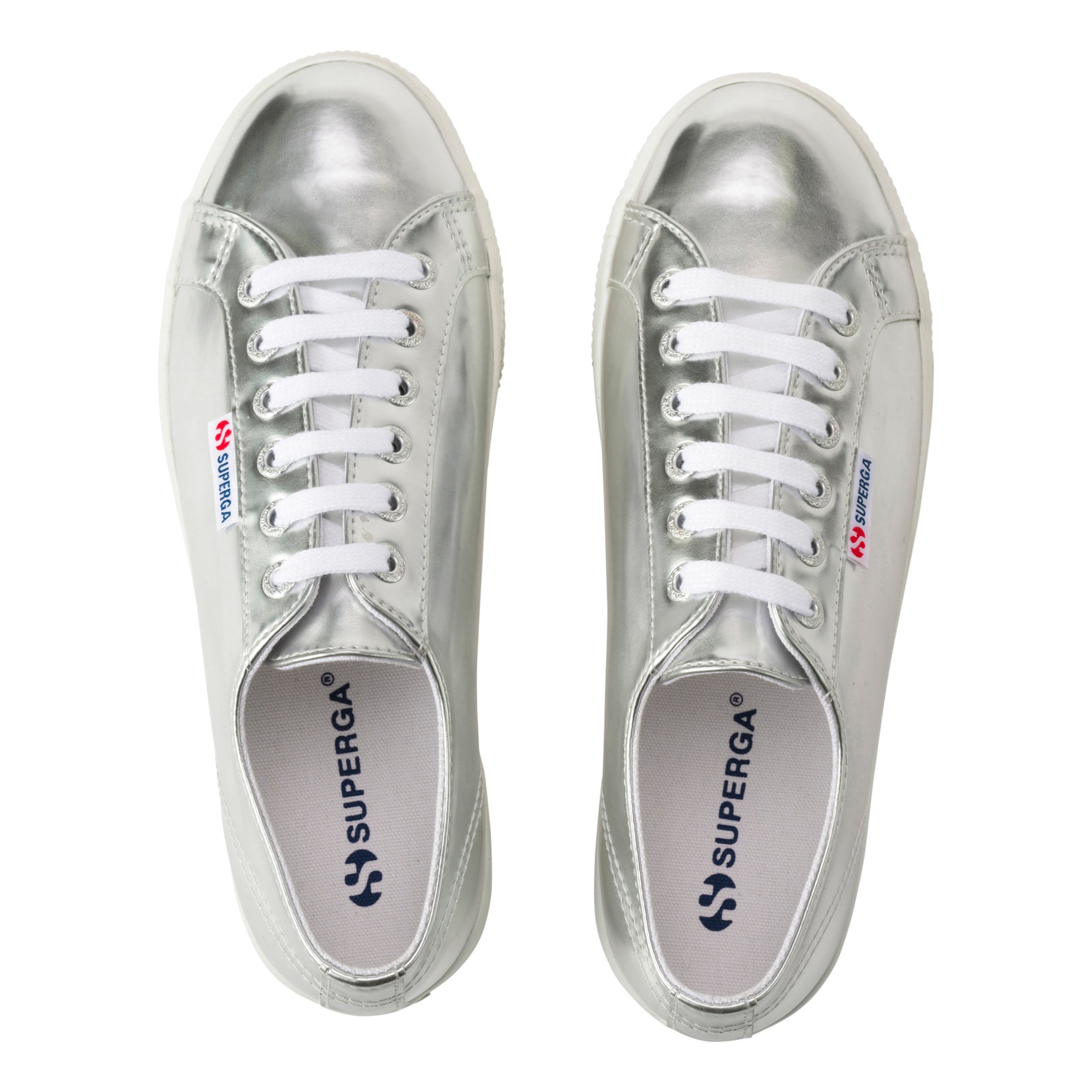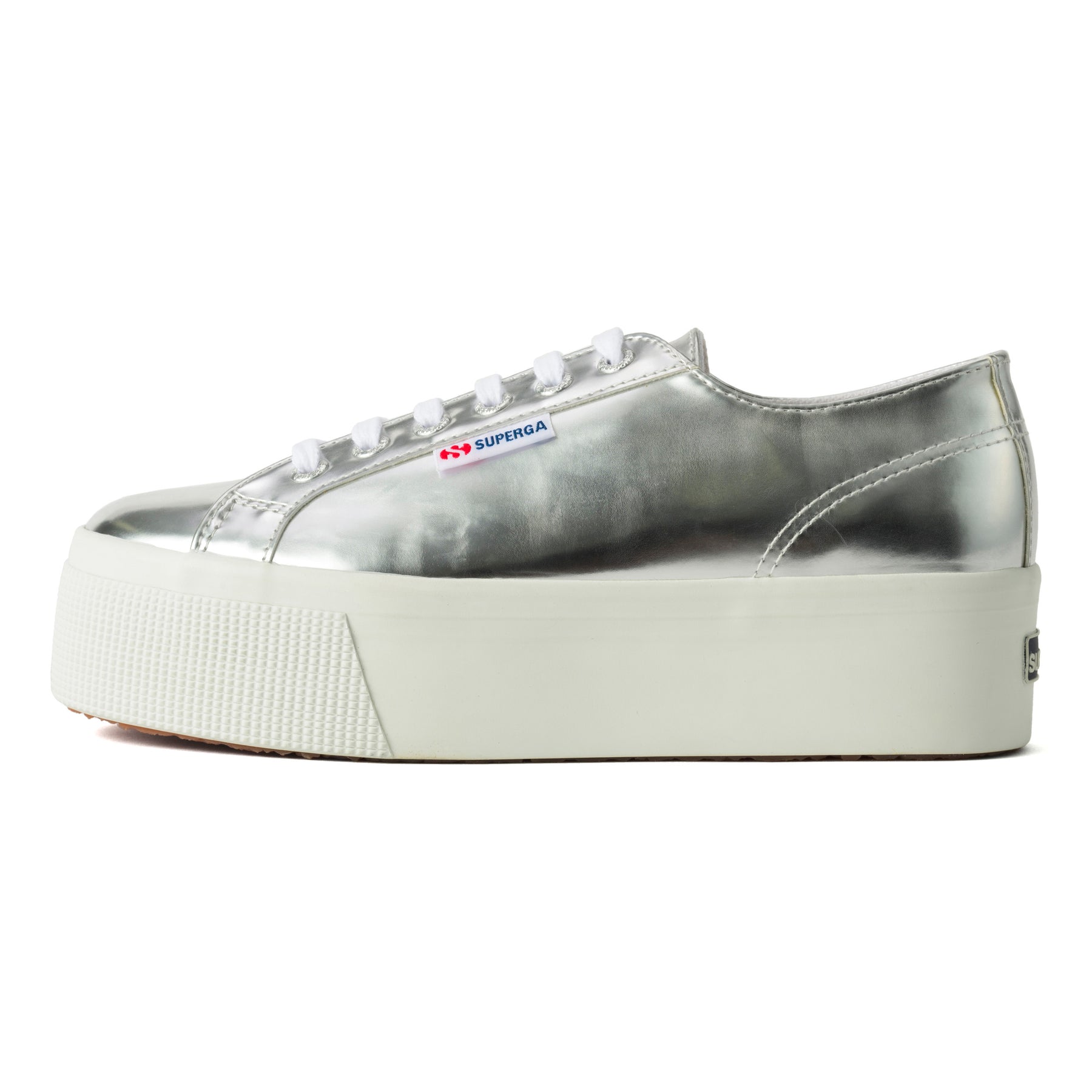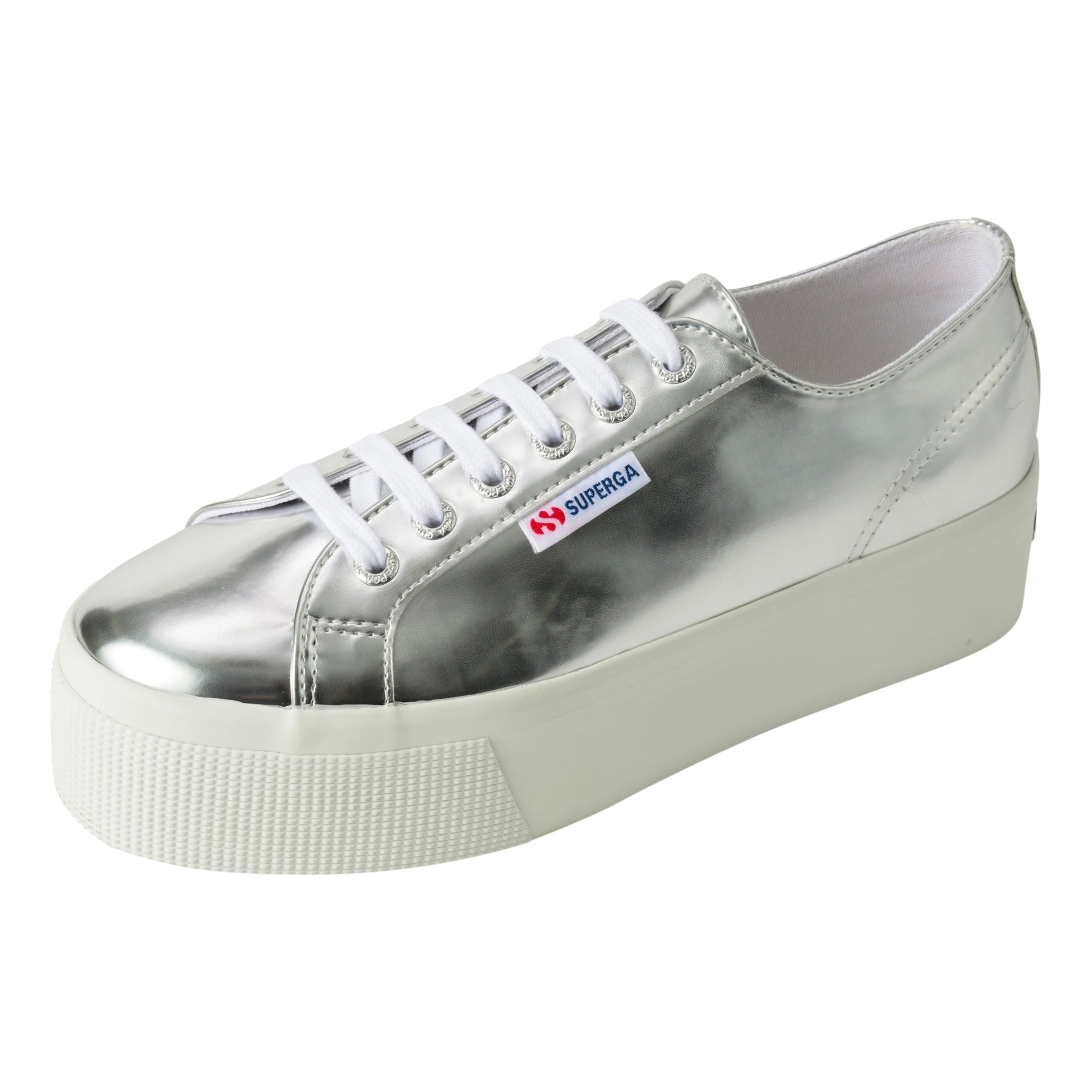 SUPERGA 2790のアッパーには、合成皮革のミラーエフェクトが使用されています。光沢感のあるエレガントな素材が、スタイリッシュな印象を与えます。内側にはコットンライニングが施されており、通気性に優れた快適な履き心地を提供します。また、ロゴ入りアルミニウム製アイレットとコットンのシューレースが、ディテールにこだわった高級感を演出しています。