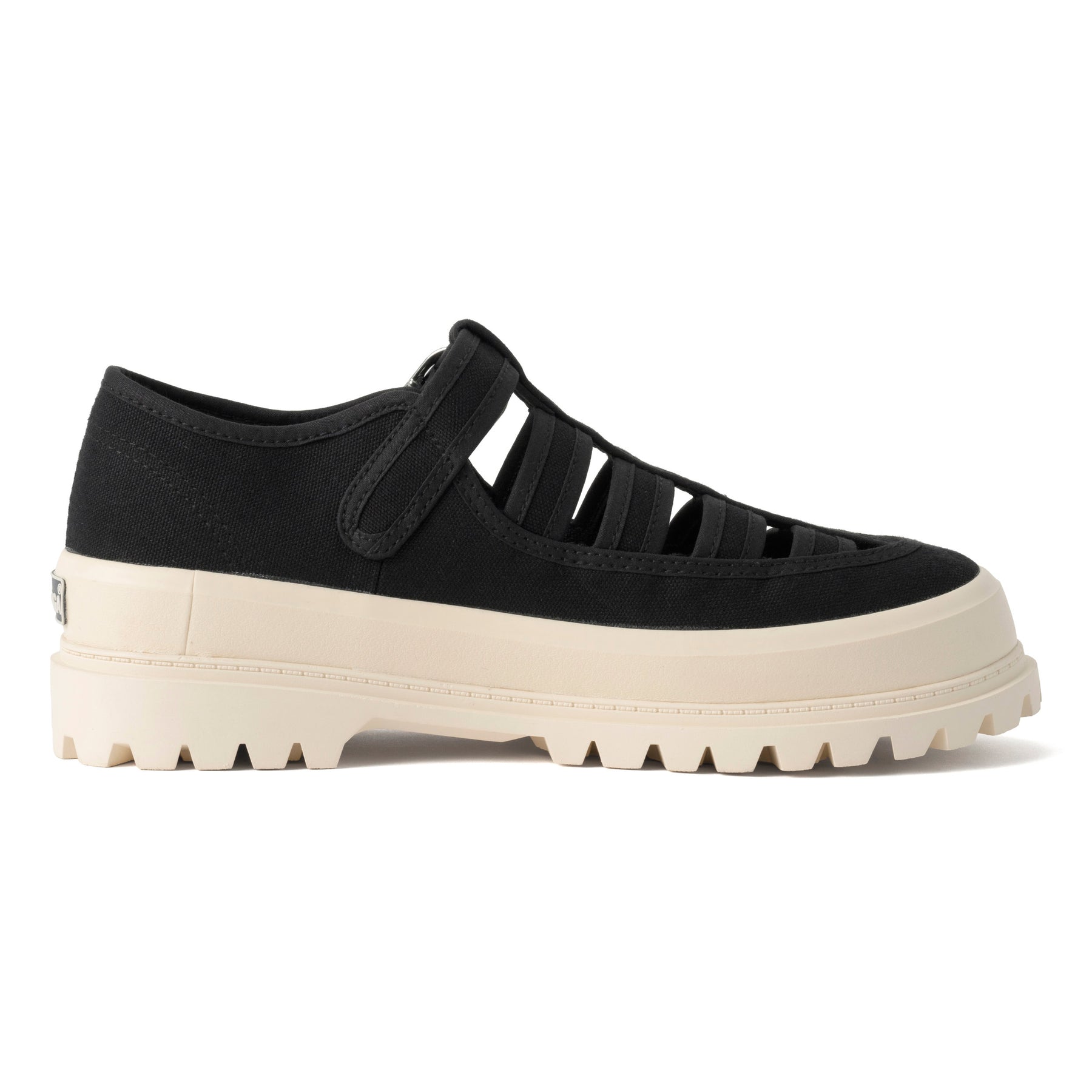 SUPERGA(スペルガ) のアイコニックなディテールを取り入れた「ALPINA(アルピナ)サンダル」。ブランドを象徴するソールと、意外性のあるシルエットを融合し、シンプルな中に個性が光るデザインに仕上げました。コットン素材のナチュラルな風合いが、軽やかで洗練された印象を演出します。